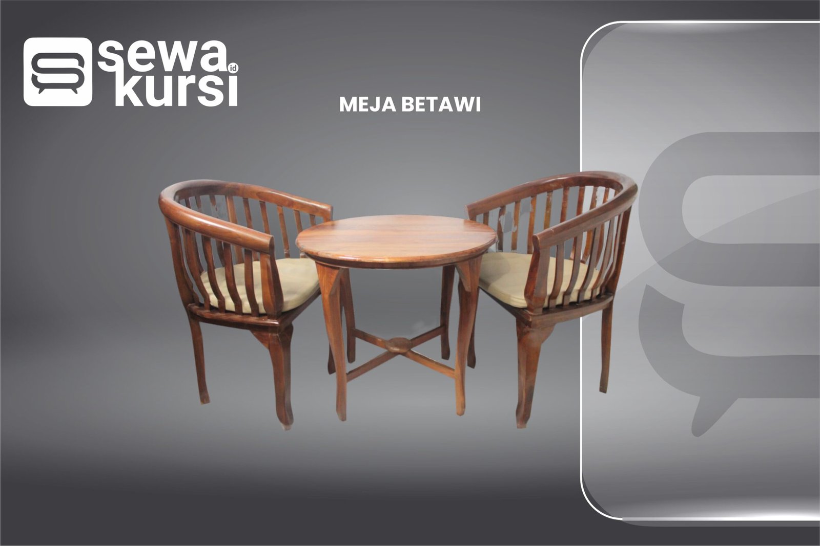 Desainnya yang unik dan estetik menjadikan Meja Betawi tidak hanya fungsional, tapi juga menambah kesan elegan dan autentik pada suasana acara atau ruangan.