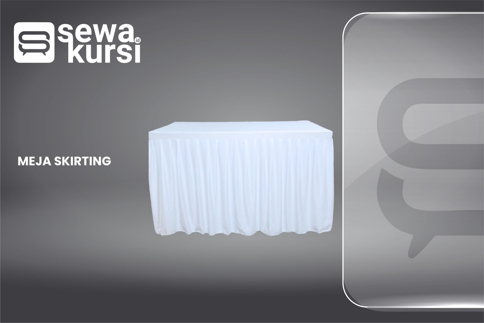 Percantik tampilan meja acara Anda dengan meja ber-skirting yang elegan dan siap pakai! Hubungi kami untuk ketersediaan dan penawaran harga terbaik.