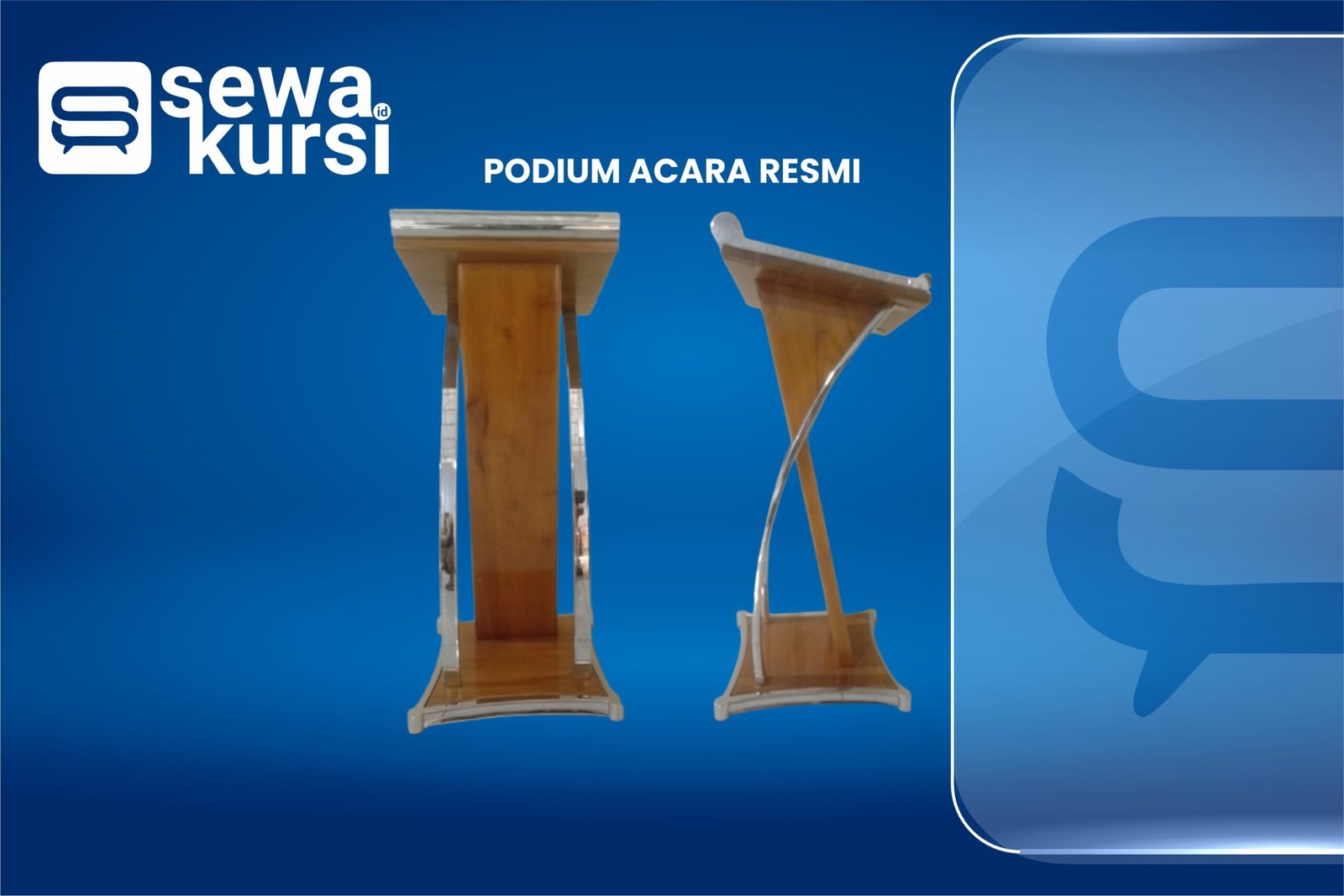 Ingin memberikan kesan profesional dan berwibawa pada acara Anda? Sewa podium kayu adalah solusi ideal untuk menunjang kegiatan formal seperti pidato, presentasi, seminar, atau peresmian. Dengan desain yang kokoh dan tampilan yang elegan, podium kayu mampu meningkatkan kredibilitas pembicara di atas panggung.